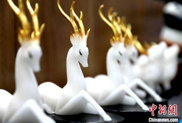 图为展馆内展示的盐雕作品。 张海雯 摄