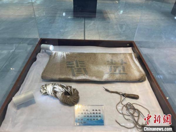 图为上世纪所用的装盐麻袋,封包麻绳,缝包针。 薛蒂 摄