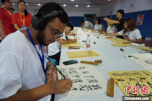 原标题:习书法、写汉字 60余名洋学生体验中国书法艺术