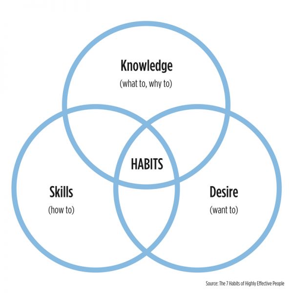 借用 The 7 Habits of Highly Effective People 中的对 habit的定义:我做这件事情需要什么 knowledge,需要哪些 skills,我的 desire 是什么?