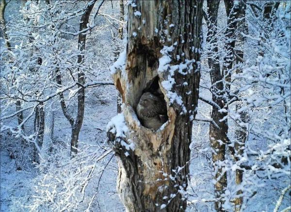 这也是一种极其谨慎的鸟。在冬季,渔鸮总是找到没有冰冻上的河面,蹲守在河岸上,看见鱼时瞬间扑进河里——斯拉特布下的陷阱,就是希望能套住渔鸮,给它们戴上仪器再放飞,收集科研数据。