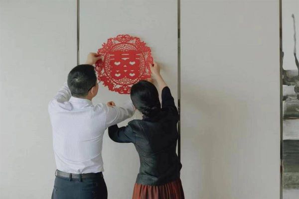 周德亮生前和妻子一起给将出嫁的女儿房间贴上喜字(周德亮家属供图)