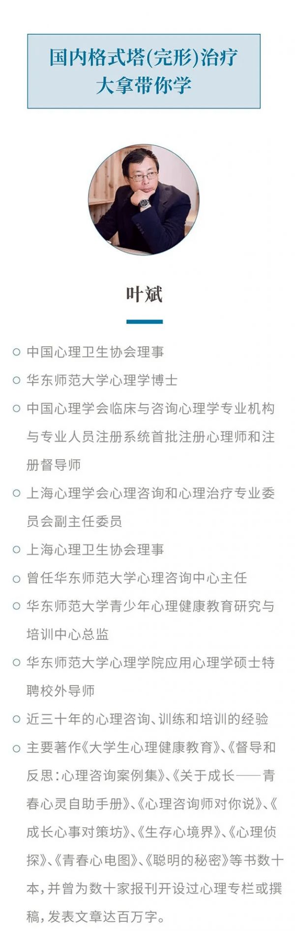 ✅立身中正的导师:因长期与格式塔直接传承者一起工作,叶斌老师一直坚持不带偏颇地呈现最经典的格式塔疗法,让学员完整地去领悟、去理解、去运用;