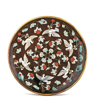 直到工艺美术家庞薰琹、雷圭元、常沙娜等从更古老的战汉纹饰、敦煌壁画中寻求灵感,工艺美术开始在明清传统之外,出现另一条中国风格的新路。在本次展览中由常沙娜等设计的几件景泰蓝盘,是这种取向的代表。