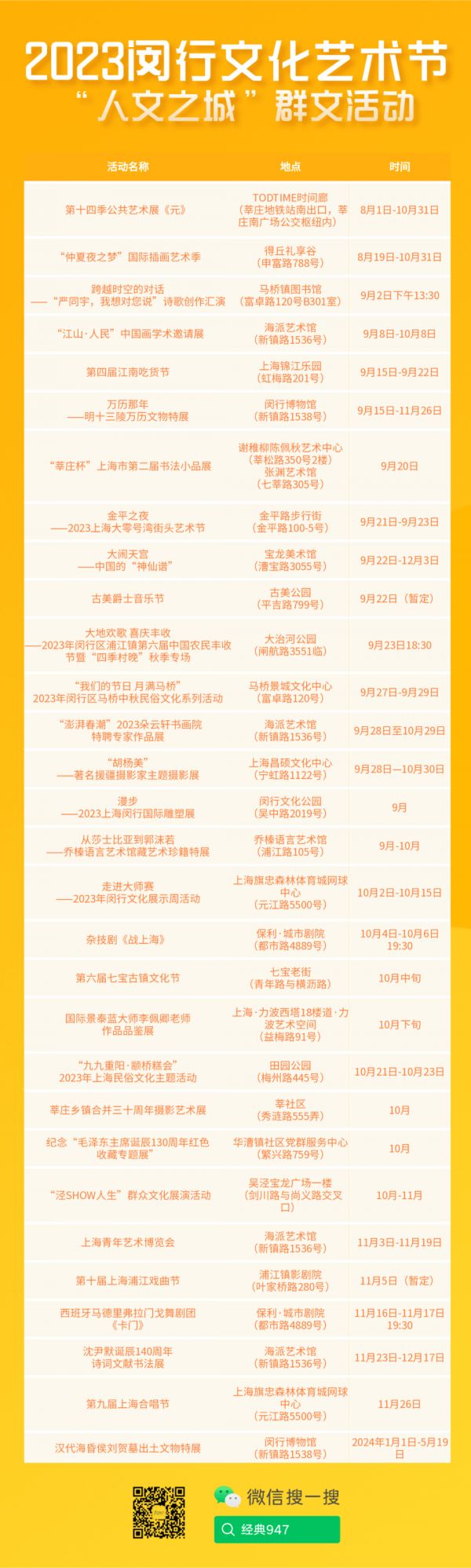 2023闵行文化艺术节系列活动一览