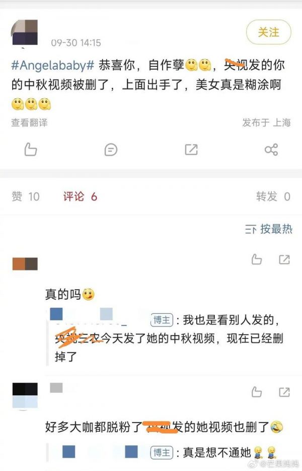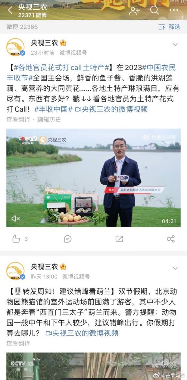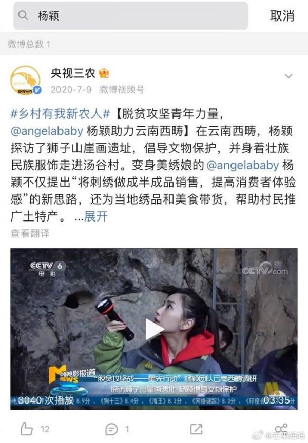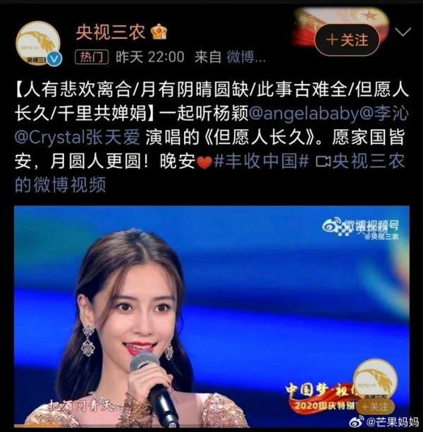 央视三农把angelababy 中秋的那条博文删了,账号内还能搜到20年的一条,不知道后续会不会接着删掉…