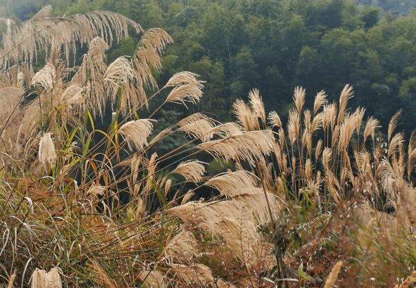 新绽放的芒花果然一丛一丛,连民家社区的院落转角,甚至砖瓦缝隙,也都有芒草,如果在大都市,可能早被拔除了吧。