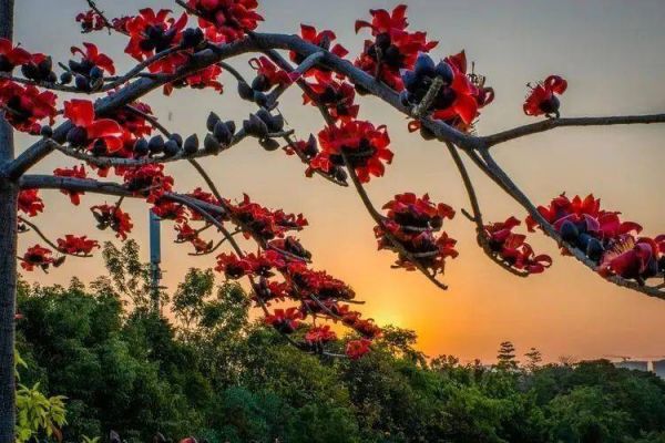 杜鹃过后,木棉开的时候,通常已近节气的立夏了。木棉花色艳而肥大,开在叶子稀疏横向生出的长枝上,一朵一朵,像燃烧的火焰,强烈而醒目,掉落到地上,也“啪”的一声,冷不防惊动树下走过的行人。