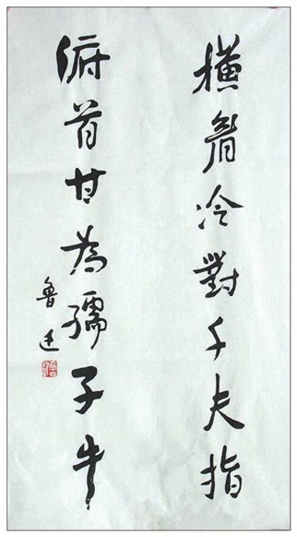 “嗯,”鲁迅微笑着应答,“我可以把昨天想到的两句联语回答你,这是:‘横眉冷对千夫指,俯首甘为孺子牛。’”