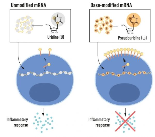 mRNA如果直接应用于人体的话,人体的免疫系统会把它当成入侵者,于是会不断地攻击它,使它无法在人体中生存。卡塔林和韦斯曼发明了一种技术,欺骗了免疫系统,认为mRNA不会构成威胁,于是mRNA可以在体内合成许多化合物,用以攻击病毒细胞。