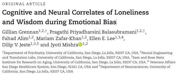 加州大学圣地亚哥分校关于智慧与孤独相关关系的研究成果,图源:《Cerebral Cortex》杂志