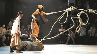 又如临近剧终埋葬老船夫一段,没有白木小棺材,没有绕棺仪式,没有道士吟唱,五位扮演者各自举起一块石头放在肩上,静默地退场。我不知这种静默是否系编导者、演出者刻意为之。不作分析,不作解说,中断叙述,或许只是提示生存的重压;又或许,面对不同生命的相同结局,除了静默之外,人们还能说些什么呢?