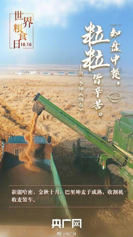 粮食,自古以来都是一个国家的立国之本。从古至今,关于珍惜粮食的古诗有很多,“谁知盘中餐,粒粒皆辛苦”“夫食为民天,民非食不生矣”“仓廪实而知礼节,衣食足而知荣辱”……尽管我国粮食生产连年丰收,对粮食安全还是始终要有危机意识。今天是世界粮食日,一起来品品这些关于珍惜粮食的名言名句,厉行节约,反对浪费。