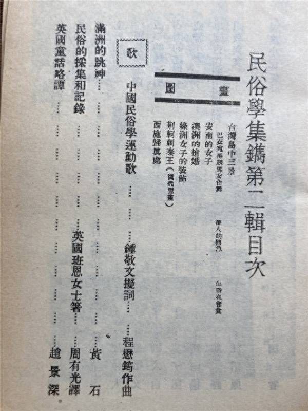 在发现了周有光的译作《民俗是什么》之后,很快在《民众教育季刊》(1933年1月31日刊第三卷)上,又发现了周有光的一篇译作《歌谣与小曲》。原作者同样是班恩女士,而周有光正是该刊物的编辑之一,可知他这一时期对民俗研究之倾心。