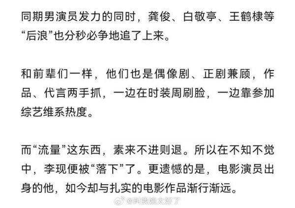 3.现在没有什么好饼给李现吃,多是挂件配角;