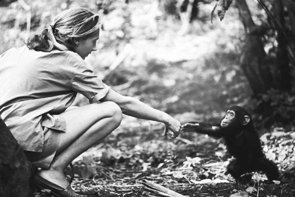 博士对黑猩猩特立独行的看法,源于她当初未曾受过学院式的教育和科研专科训练,全凭直觉进入自然荒野,从而不落俗套,独辟蹊径地以勇敢和博爱精神为支撑,开辟了一片跨越物种界限的新天地。比如,她给每一位研究对象都起了名字,而不再像实验室那样给动物编号,这就形成了一种平等眼光看待每只黑猩猩,而非人对动物的居临态度。她会与黑猩猩进行平和的目光交流,甚至凝视良久。我曾多年与动物打交道,深知眼光的相对通常都是一种敌视,只有少数情况下才代表了善意和爱意。比如,你面前有一只猕猴,当你直眉瞪眼地看着它时,简直就是“叫板和挑战”的表示,在野外那是万万使不得的。岂料,一种动物的大忌,竟是另一种动物的大爱,可见不同种动物的语言行为存在着文化符号的巨大差异性,我们面对异类恰恰缺乏对其“异质性”的理解和尊重。