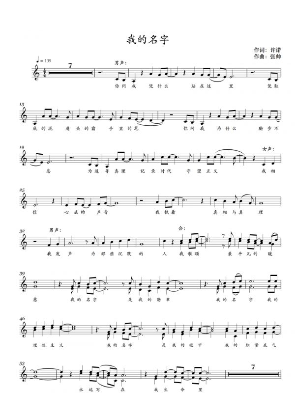 还同时发布了歌词和乐谱