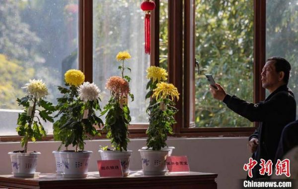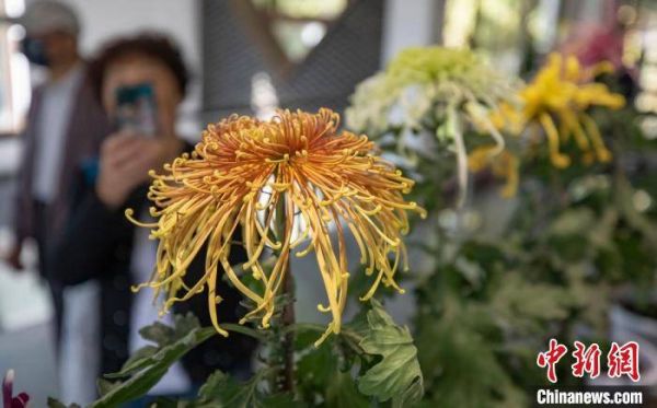 展出的精品菊花吸引市民拍摄。 中新网 记者 泱波 摄