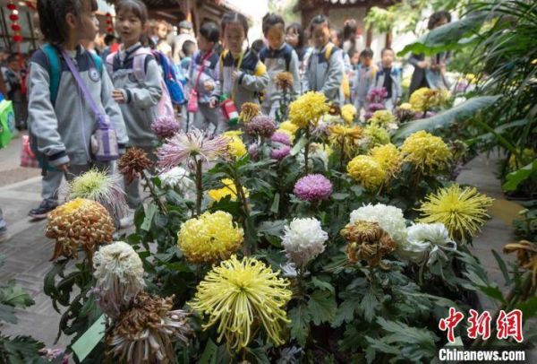 秋游的小朋友赏菊花。 中新网 记者 泱波 摄