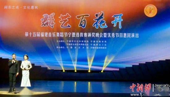 中新网福建新闻11月29日电 (周俊因)29日晚,由宁德市文化和旅游局、市教育局、市文学艺术界联合会、市总工会主办的“群艺百花开”第十五届福建音乐舞蹈节宁德选拔赛颁奖晚会暨优秀节目惠民演出在宁德市艺术馆剧场开演,为群众献上视听盛宴。