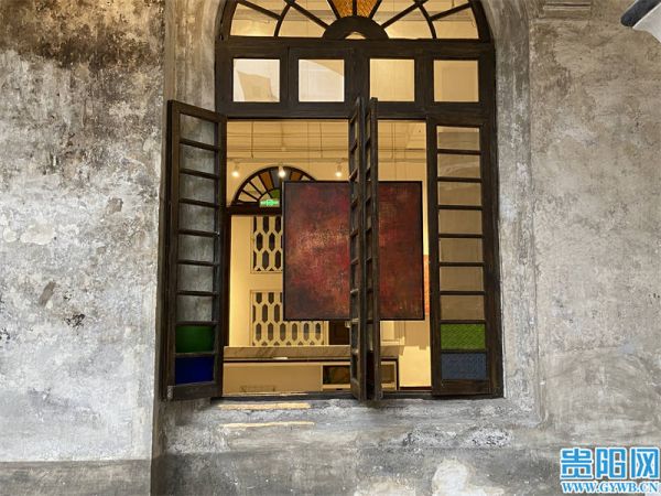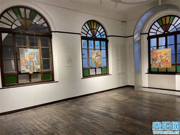 “往往展览的画作都挂在墙上,墙变成了画作的载体,这次展场的画作挂在窗户的位置,在视线经过窗户正反观看的同时,还保留了窗户的功能。”李新春介绍到,与此同时还要保证窗户外的墙壁颜色与作品相呼应,还要尽力让窗户内的绘画作品与彩色玻璃呼应。