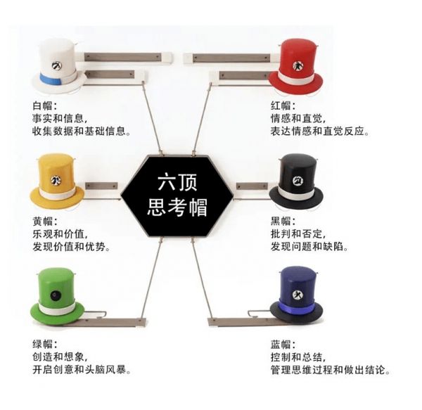 每思考一个问题,六顶帽子要轮番出场,才能做出最稳妥的选择。