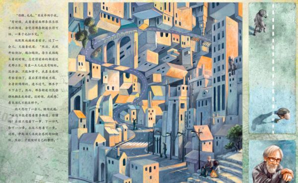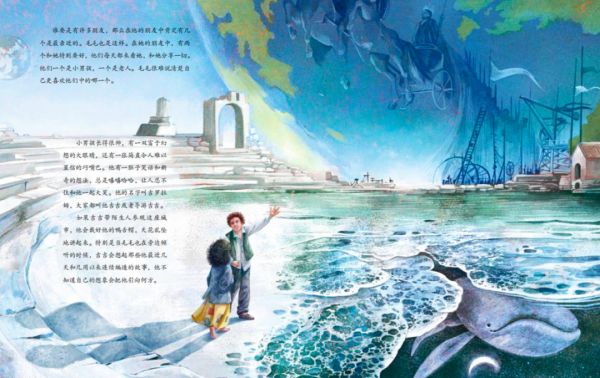 不过,《毛毛》的图画书版邀请一位意大利插画家来绘制,不知是不是基于某种特意的安排,还是纯属巧合?因为《毛毛》的故事背景就设定在类似罗马这样有着圆形大剧场废墟的城市,而当年的恩德怀揣着这个故事创意,和妻子一起从阴冷的德国搬到他俩都很喜欢的气候宜人的意大利。他在迁居罗马郊外的那几年里写完了《毛毛》的主体部分,他曾这样说:“《毛毛》是对罗马的一种致敬,标志着我对这座美妙的城市及其令人惊叹的居民们的感激之情。”