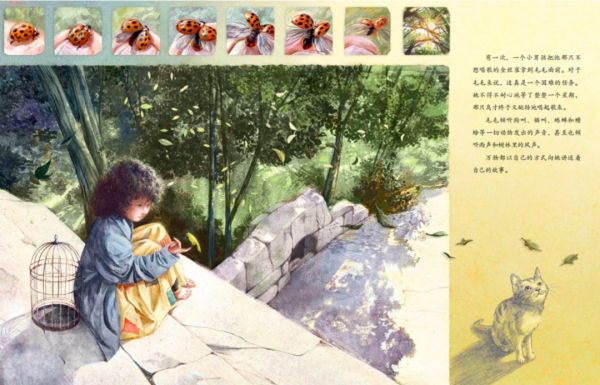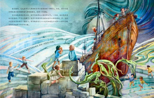《毛毛》的确是一部美丽的童话,也可以说是幻想小说。但它也是一部富有启示的寓言,一本富有诗意的哲理书。50年前,顿悟后的恩德将他的感悟分享给芸芸众生,50年后,我们发现,故事中所传递的信息变得更有价值。如今这个“如魔法般美丽”的图画书版虽然只是截取了部分信息,但它将适读年龄降低到五六岁,而且保留了最重要的提醒:“时间就是生命,生命在人心中。”