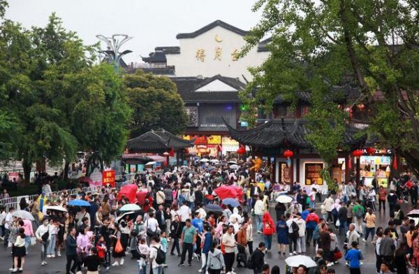 2023年10月3日,江苏省南京市,当日是中秋国庆小长假第五天,不少游客前往南京夫子庙景区参观游览,乐享国庆假期。IC photo 资料图