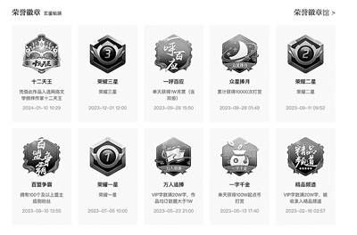 作品界面的荣誉徽章包括众星捧月(累计获得1万次打赏)、一呼百应(单天获得1万月票)、万人追捧(VIP字数满20万字,作品均订数大于1万)……