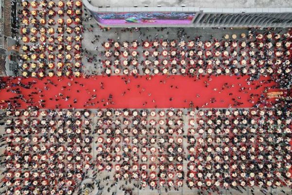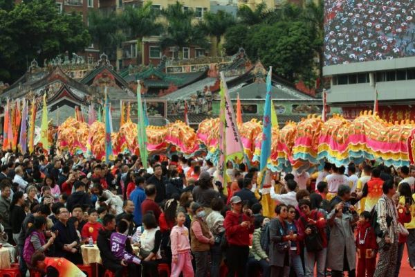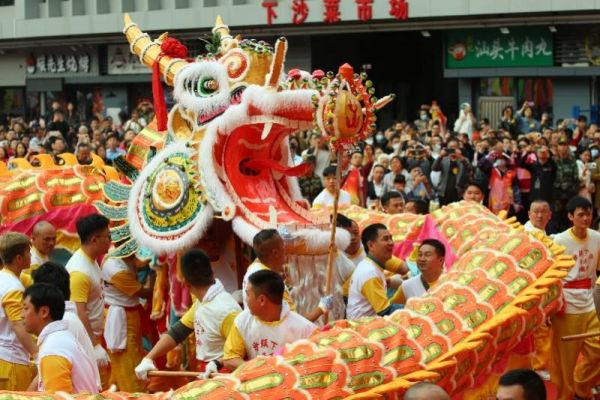 下沙村民表演108米长龙,万人围坐共品大盆菜