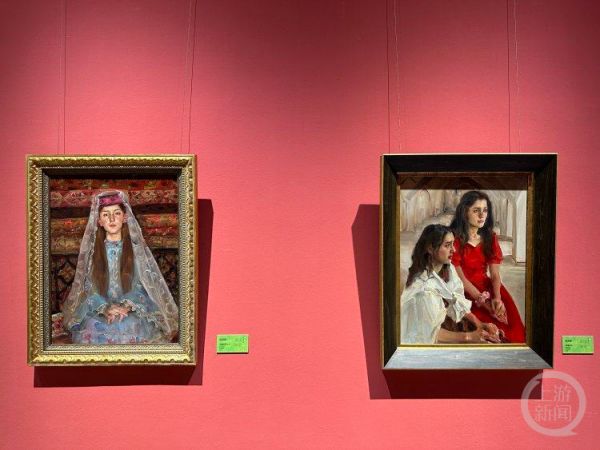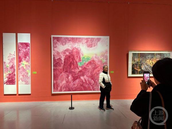 像重庆市美术家协会主席、四川美术学院院长庞茂琨就带来了自己前往新疆采风时,以少数民族盛装少女为对象创作的油画《新疆姐妹》。重庆美术馆(重庆画院)书记、馆(院)长王发荣,以及蒋才、唐德福等艺术家带来的《神女应无恙 当惊世界殊》《峡江雄关通古今》《夔门》等作品,把笔触放到了风光旖旎的长江三峡上,惹得现场不少观众频频举起手机留影。