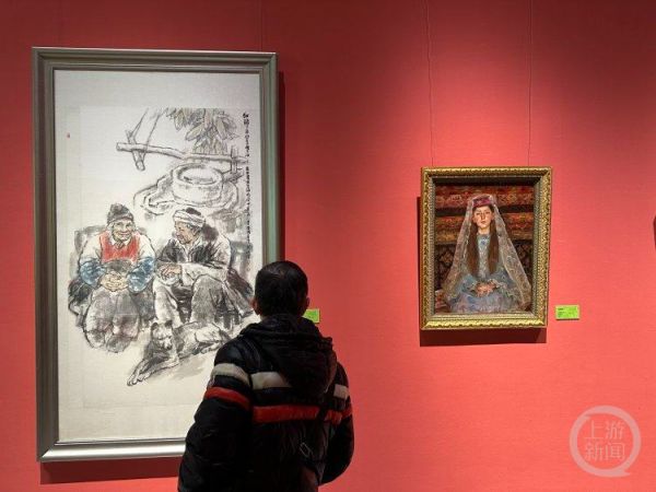 6日下午,上游新闻记者走进重庆美术馆1号展厅看到,除了花鸟虫鱼等传统中国画描绘题材之外,普通百姓的日常生产生活场景成了最普遍的聚焦对象。