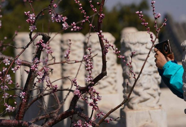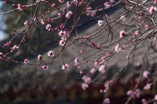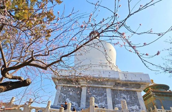 原标题:琼岛春阴:春日映白塔 山桃绽芳华