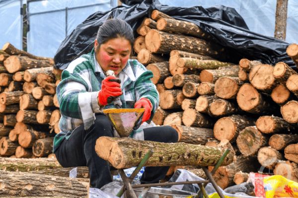 春分时节,是通江银耳育种的好时机。3月20日,四川省巴中市通江县陈河镇,耳农正在青杠树上育种“通江椴木银耳”。