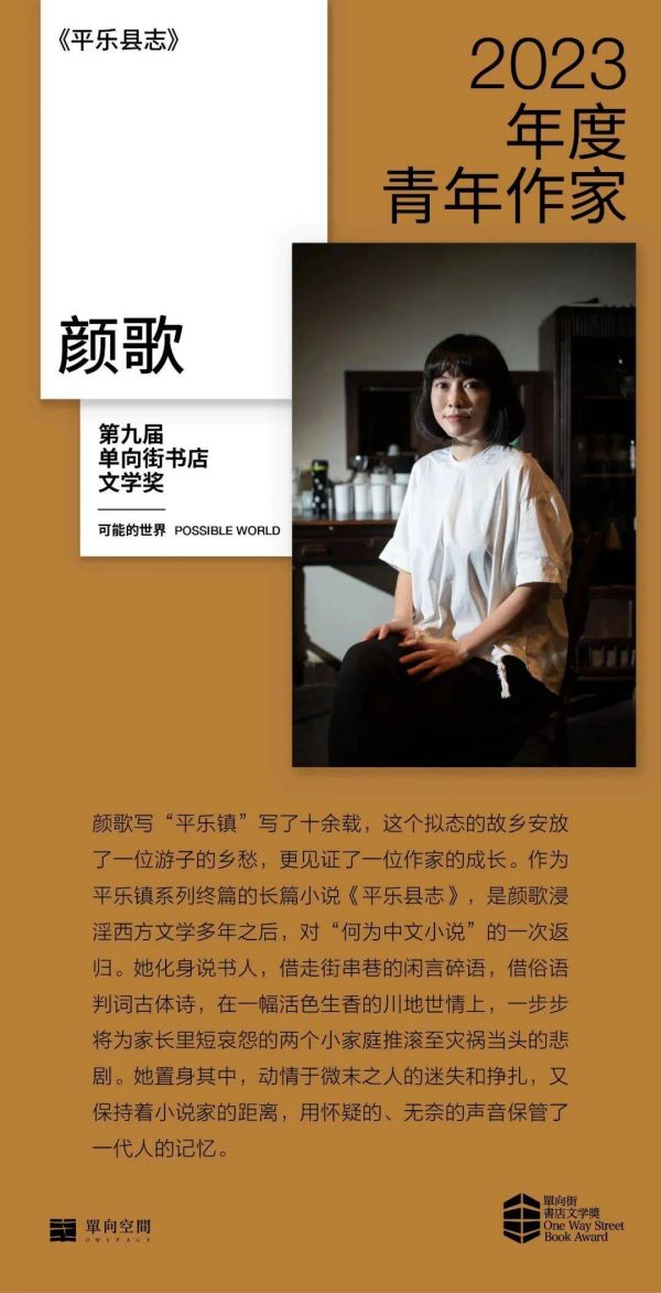 “平乐镇”的故事颜歌写了十余载,这个拟态的故乡始终安放着她的乡愁,也见证着她的成长。前不久揭晓的第九届单向街书店文学奖中,颜歌凭借《平乐县志》获得了2023年度青年作家奖项。