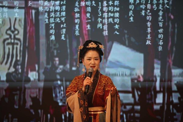 讲座采取“专家解读”穿插“情景演绎”的形式举办。内容上以主讲人解智伟原创的楚文化系列诗歌为轴线,围绕“楚魂”这一主题展开阐释,充分展现楚人“筚路蓝缕,以启山林”的开拓精神,“和氏献壁,视死如归”的担当精神,“三年不鸣,一鸣惊人”的创新精神……形式上由传统朗诵改为“演诵”,集朗诵、表演于一体,营造出立体化、沉浸式的文化氛围;同时聚焦传统文化与现代技术的链接互动,由AI人工智能主持进行节目报幕,令人耳目一新。活动中,一首首脍炙人口的原创诗歌经过吟诵者饱含深情的演绎,勾勒出了楚文化的独特魅力与深厚底蕴。