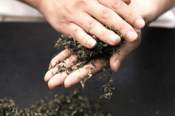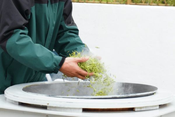 炒制过程为纯手工,不借助任何机械,分为高温杀青、热揉成形、搓团显毫、文火干燥四道工序。