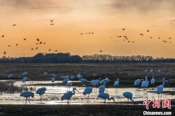 近日,内蒙古图牧吉国家级自然保护区迎来候鸟迁徙高峰,20余万只候鸟陆续抵达。大鸨、丹顶鹤、白鹤、东方白鹳、白天鹅、灰鹤等珍稀鸟类或在水面上戏水,或在草丛里起舞,保护区俨然成为“百鸟天堂”。