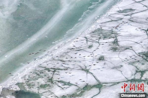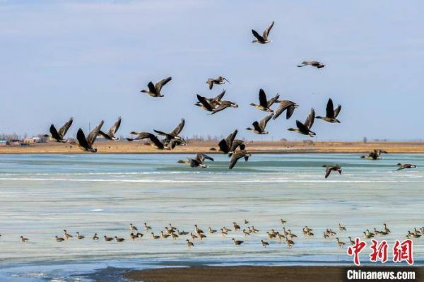 候鸟飞过湖面。 毕力格 摄