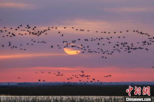 落霞与候鸟绘就唯美画卷。 毕力格 摄