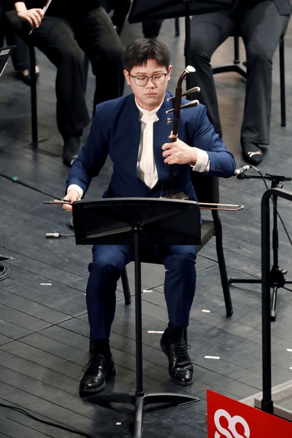 比如二胡、中阮,管弦乐队的音响往往很宏大,民族乐器的声音很容易被掩盖,很考验作曲家的写作功力、写作技术,“所以,扩音环节很重要。另外,作曲家要让民族乐器从乐队的缝隙中透出来,让观众听到,解决音响平衡的问题。”