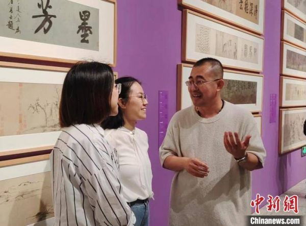 4月25日,在河北博物院,河北省文物鉴定委员会委员、河北博物院学术研究部文博馆员、书画鉴定专家樊海军为观众讲解画作。 李盟 摄