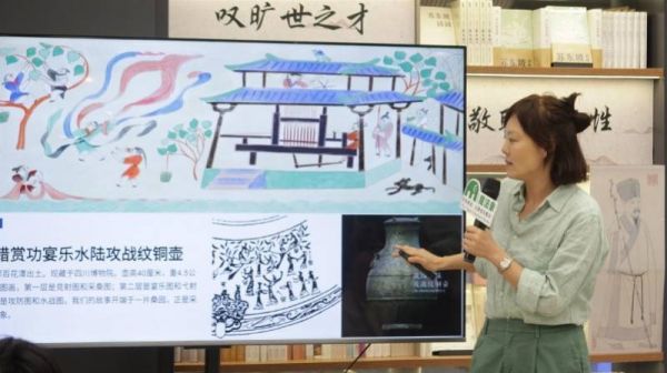 为完成创作,她曾多次参观成都博物馆、四川博物院和三星堆博物馆等获取信息材料。绘本中许多画面场景和器物设计灵感来自国宝和世界级文物,比如:“采桑”画面出自战国采桑宴乐攻战纹铜壶,“织绸”出自成都老官山汉墓出土的蜀锦织机模型,“异国的集市”出自伊朗波斯波利斯遗址浮雕。此外,吴敬查阅有关古代印度、古代波斯的古迹图文和视频资料,边画边改,“蜀人的服饰和形象设定就改了五版,古印度的角色也改了三四次。”