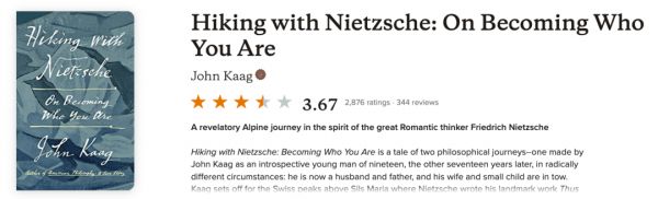 作者 John Kagg 是一位美国哲学家。年轻时他只身前往阿尔卑斯山,在群山间寻找尼采写下《查拉图斯特拉如是说》的灵感之源;17 年后,人到中年的 John 带着妻子和女儿重攀阿尔卑斯山,寻求解读尼采哲学中的两个关键命题——何为「超人」?如何「成为你自己?」
