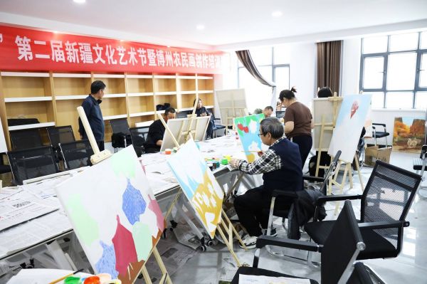 “博州文化馆坚持以铸牢中华民族共同体意识为主线,举办农民画创作培训班及农民画优秀作品展,提升基层文化志愿者的服务意识和业务水平,培养更多基层文化能人、文化带头人,推动更多更好的、反映人民生活及社会变化、能够增强人民精神力量的优秀文艺作品创作,讲好中国式现代化进程中的新疆故事。”博州文化馆副馆长王文男表示。(外力)