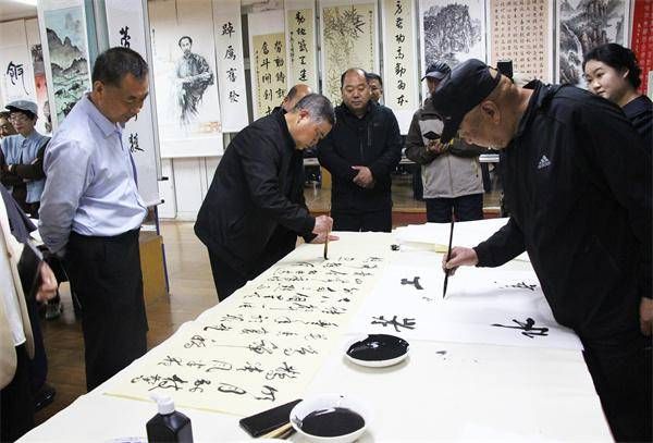 4月29日,高阳县职工书画作品比赛现场书画爱好者进行现场创作。杨瀰摄