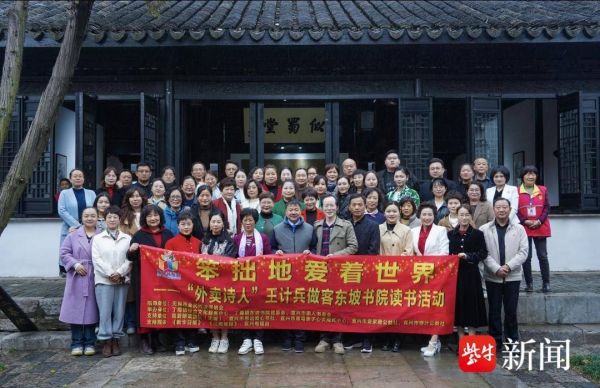 十年前书友会刚刚成立时是只有10个人的小型读书会,现在书友会立足丁蜀镇,向宜兴、无锡到江苏全省乃至全国、全世界扩展辐射,“现在我们是有两千多位来自全世界各地的爱书人参与的读书会。” 王计兵作品分享活动当日也非常热闹,“我在2023年3月第一次读到王计兵的书,泪流满面,后来一年多时间中我多次写文章推荐王计兵的作品,去年5月1日第一次在惠人书友会的群里公开推荐了,从去年年底到今年4月组织了六次王计兵的读书活动,终于邀请了王计兵到宜兴丁蜀镇东坡书院读书现场,担任惠人书友会阅读推广大使。”这天的分享会原本只邀请了三十多人,但最后来了六十多人,书友们写下了25篇精彩的读后感,累计有一万五千余字,参与现场活动的读者王芳琳表示“人们聚集在一起,争先上台向诗人表达各自的阅读体验和感悟,就像雨珠在大地上相互交融一般,形成了一种美妙的交流与连接。”