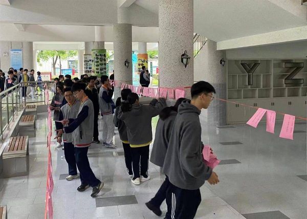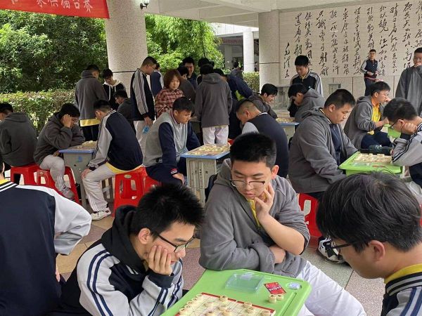 除了琳琅满目的美食和艺术原创作品,象棋擂台赛、有奖猜谜语也极大丰富了学生们的精神世界。一张张趣味十足的谜语吸引了不少学生的驻足,只要猜出谜底,就可以撕下纸条去和老师核对,答对就可以赢得奖品。