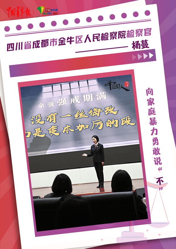 在四川省成都市金牛区检察院检察官杨蔓看来,青春是无畏是勇敢,是用汗水浇灌每一份希望,是历经困难依然不屈不挠,是有一分热就发一分光。